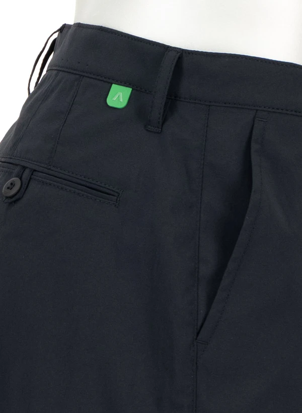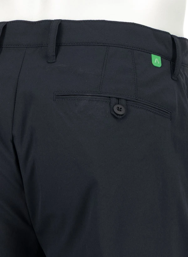 Die tiefschwarze Luis präsentiert sich in einer modernen Wide-Fit-Silhouette, die Bewegungsfreiheit mit zeitgemäßem Stil verbindet. Das federleichte Polyestergewebe mit Coolmax-Technologie transportiert Feuchtigkeit zuverlässig nach außen und sorgt für ein angenehm trockenes Tragegefühl – selbst bei intensiver Bewegung oder wärmeren Temperaturen. Die atmungsaktive Konstruktion macht sie zum idealen Begleiter für sportliche Aktivitäten wie Golf, aber auch für den urbanen Alltag. Praktische Seitentaschen und Gesäßtaschen bieten ausreichend Stauraum für Essentials.