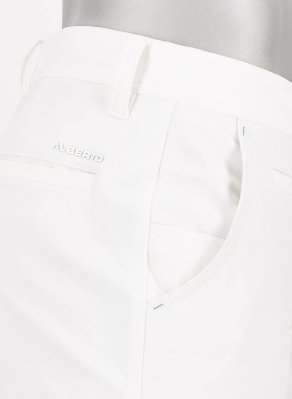 Das strahlende Weiß dieser Rookie-Golfhose wirkt auf dem Platz souverän und sportlich zugleich. Das hochwertige Polyamid-Elasthan-Gewebe mit FX4 Dry-Technologie transportiert Feuchtigkeit zuverlässig nach außen und sorgt für ein angenehm trockenes Tragegefühl – selbst bei schweißtreibenden Runden. Die wasserabweisende Ausrüstung macht die Hose zum verlässlichen Begleiter bei wechselhaftem Wetter, während die Regular Fit-Passform optimale Bewegungsfreiheit garantiert. Durchdachte Details wie der integrierte Tee-Holder, die Antirutsch-Tapes im Bund und die funktionalen Taschen zeigen ALBERTOs Verständnis für die Bedürfnisse ambitionierter Golfer.