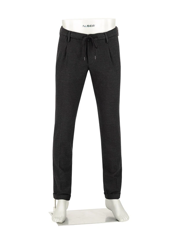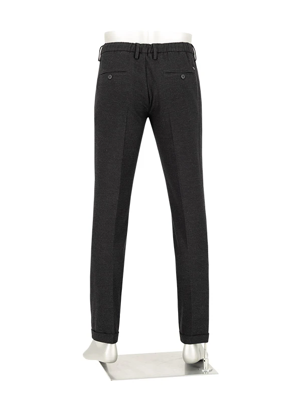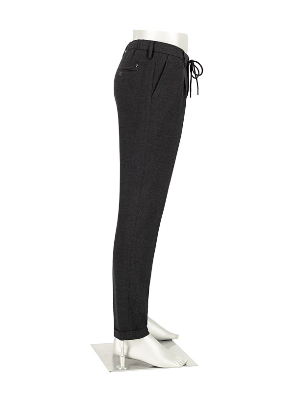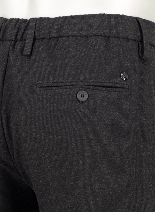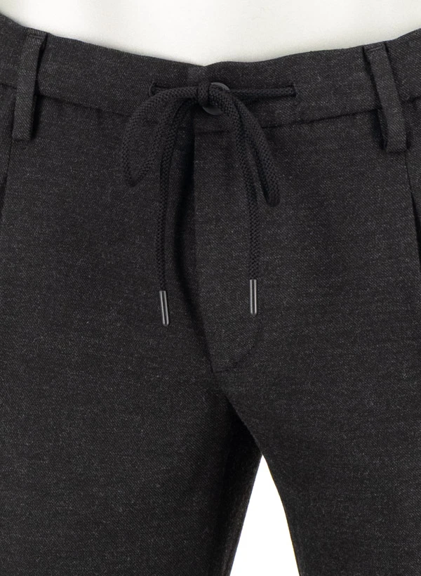 Der anthrazitfarbene Flanell zeigt sich in matter Eleganz, während der außen wie innen tragbare Tunnelzug für variable Styling-Optionen sorgt. Das weiche Flanellgewebe aus recyceltem Polyester und Viskose schmeichelt der Haut und bietet durch den Elasthan-Anteil angenehme Bewegungsfreiheit. Die Tapered-Silhouette verjüngt sich zum Knöchel hin und wirkt durch den Saumumschlag besonders lässig-modern. Praktische Details wie die geknöpften Gesäßtaschen und der teilelastische Bund erhöhen den Tragekomfort im Alltag.
