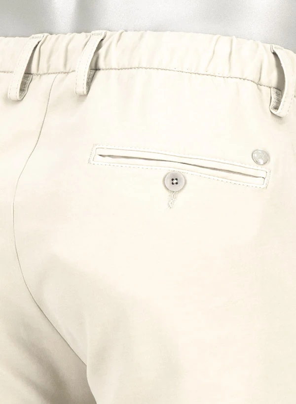Der zurückhaltende Kitt-Ton verleiht dieser Slim-Fit-Hose eine zeitlose Eleganz, während die schmale Fußweite von 32 cm für eine moderne Silhouette sorgt. Das innovative Materialmix aus Baumwolle und nachhaltigem Tencel fühlt sich außergewöhnlich weich an und reguliert Feuchtigkeit optimal für ganztägigen Tragekomfort. Die clevere Kombination aus Elastikbund an der Hinterhose und Tunnelzug mit Kontrastkordel bietet Flexibilität ohne auf einen gepflegten Look zu verzichten. Seitliche Einschubtaschen und geknöpfte Gesäßtaschen runden die durchdachte Ausstattung ab, während die OEKO-TEX Zertifizierung für schadstoffgeprüfte Sicherheit steht.