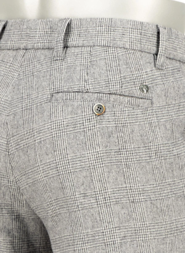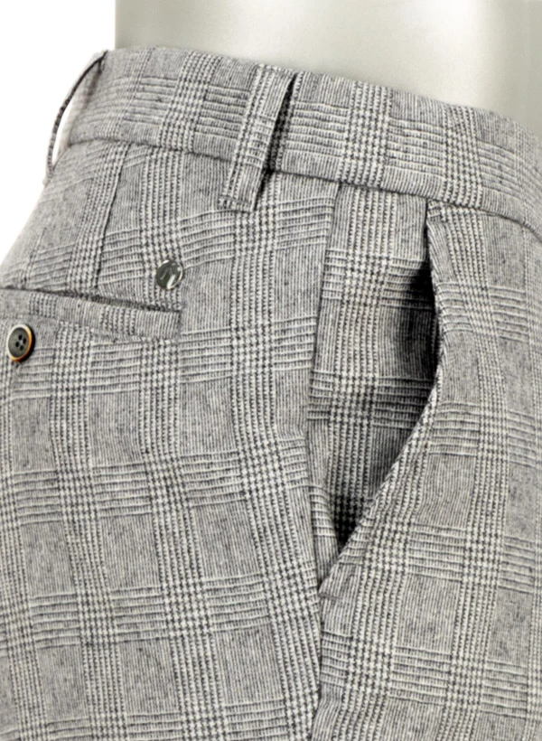 Das feine Glencheck-Muster in warmem Graubeige verleiht dieser Hose eine dezente Eleganz mit britischem Einschlag. Die hochwertige italienische Wollmischung fühlt sich geschmeidig an und bietet durch den Elasthan-Anteil angenehme Bewegungsfreiheit für den ganzen Tag. Ob zum Business-Meeting oder zum gehobenen Dinner – diese Hose verbindet klassische Stilsicherheit mit modernem Tragekomfort. Die waschbare Qualität und die OEKO-TEX-Zertifizierung unterstreichen den durchdachten Ansatz für pflegeleichte Alltagstauglichkeit.