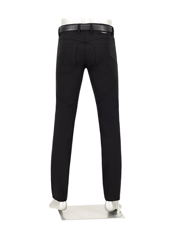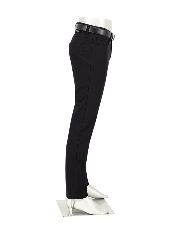 Die tiefschwarze Farbe verleiht dieser Five-Pocket-Hose zeitlose Eleganz, während die wasserabweisende Ausrüstung für praktischen Schutz im Alltag sorgt. Das hochelastische Polyamid-Elasthan-Gewebe bietet außergewöhnliche Bewegungsfreiheit und kehrt nach jeder Dehnung in seine ursprüngliche Form zurück – ideal für lange Tage im Büro oder auf Reisen. Die Regular Fit Passform sitzt bequem ohne aufzutragen und harmoniert sowohl mit Business-Hemden als auch mit lässigen Pullovern. Die Fußweite von 34 cm sorgt für eine moderne, schlanke Silhouette ohne einzuengen.