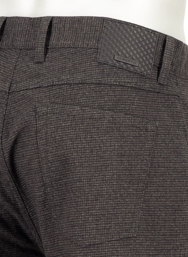 Das feine Mini Pepita Muster in Anthrazit-Schoko verleiht dieser Five-Pocket-Hose eine dezente Textur mit urbanem Charakter. Der hochwertige Baumwoll-Stretch-Mix mit Viskose-Anteil sorgt für geschmeidigen Griff und angenehme Bewegungsfreiheit den ganzen Tag über. Die Modern Fit Passform sitzt zeitgemäß schlank ohne einzuengen – ideal für Business-Casual oder gehobene Freizeitlooks. Die klassische Five-Pocket-Ausstattung mit Münztasche bietet praktischen Stauraum, während die OEKO-TEX® Zertifizierung schadstoffgeprüfte Qualität garantiert.