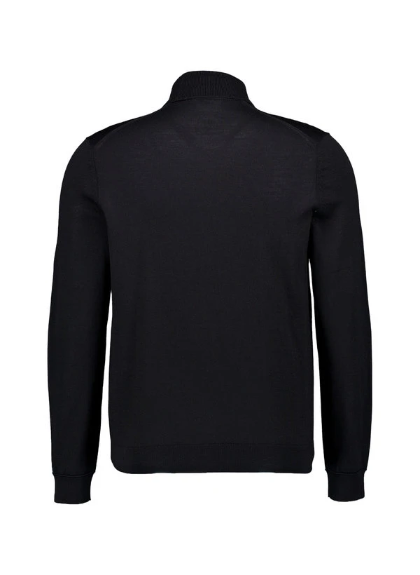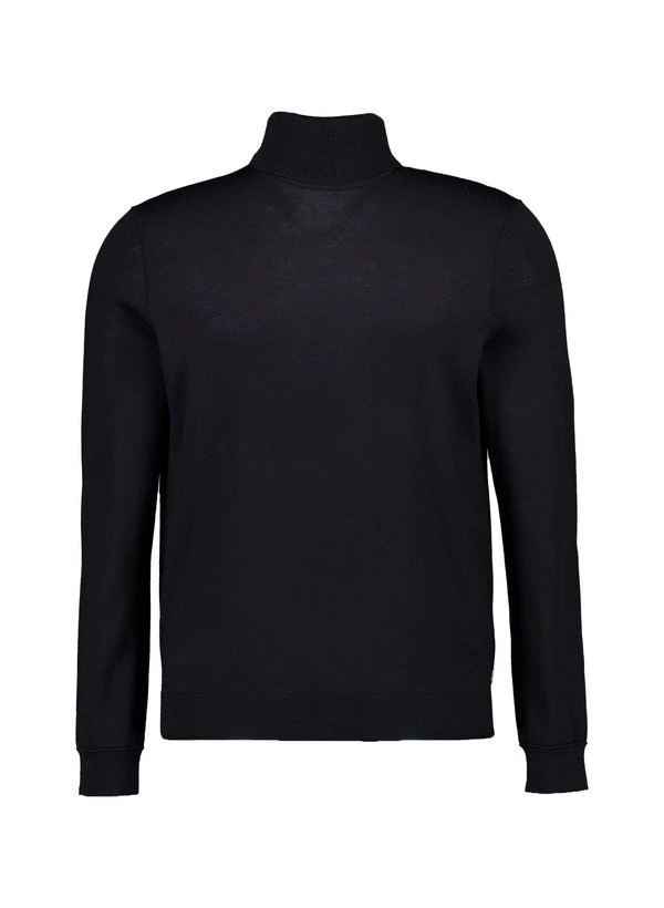 Der hohe Rollkragen in tiefem Schwarz rahmt das Gesicht maskulin und verleiht diesem Feinstrickpullover seine charakteristische Silhouette. Die reine Schurwolle wärmt zuverlässig, reguliert die Temperatur natürlich und fühlt sich dabei weich und kratzfrei an. Für urbane Winterlooks oder als elegante Basis unter dem Sakko macht der Pullover eine exzellente Figur. Präzise gearbeitete Rippenstrickbündchen an Kragen, Ärmeln und Saum sorgen für perfekten Sitz und betonen die hochwertige Verarbeitung.