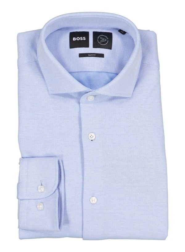 Die feine Struktur des hellblauen Baumwoll-Jerseys verleiht diesem Hemd eine moderne Textur, die sich deutlich vom klassischen Business-Hemd abhebt. Das weiche Jersey-Material fühlt sich angenehm auf der Haut an und bietet durch seine Elastizität deutlich mehr Bewegungsfreiheit als gewebte Hemdstoffe. Die Kombination aus italienischer Knopfleiste und Kentkragen macht das Modell bürotauglich, während der Jersey-Charakter für urbane Lässigkeit sorgt. Weitenverstellbare Sportmanschetten und die schlanke Slim-Fit-Passform unterstreichen den zeitgemäßen Schnitt.