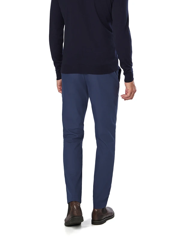 Das satte Nachtblau verleiht dieser schmal geschnittenen Hose eine elegante Ausstrahlung, die sowohl im Büro als auch in der Freizeit überzeugt. Der hochwertige Baumwollmix mit Elasthan-Anteil sorgt für spürbare Bewegungsfreiheit und behält dabei seine Form – ideal für lange Arbeitstage oder Reisen. Die cleane Optik mit flachen Einschubtaschen und der versteckte Sicherheitszipper unterstreichen den minimalistischen Ansatz. Eine Fußweite von 34 cm bei Größe W33/L32 garantiert eine moderne, körpernahe Silhouette ohne einzuengen.