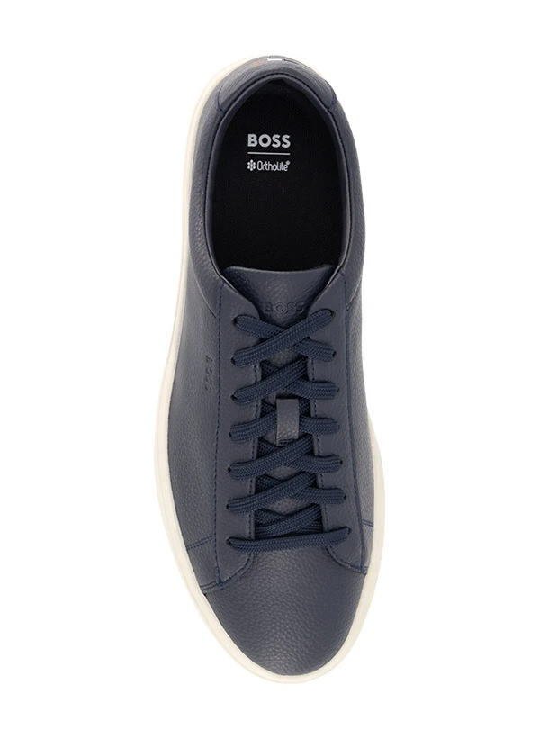 Die markante weiße Gummisohle setzt einen sportlichen Akzent zum dunkelblauen genarbten Leder des Kieran Sneakers. Das geschmeidige Leder schmiegt sich angenehm an den Fuß, während die gepolsterten Schaftränder für druckfreien Tragekomfort sorgen. Herausnehmbare Einlegesohlen und die robuste Gummisohle unterstreichen die durchdachte Funktionalität. Die dezente Perforierung an den Seiten sorgt für zusätzliche Atmungsaktivität und verleiht dem Design eine moderne Note.