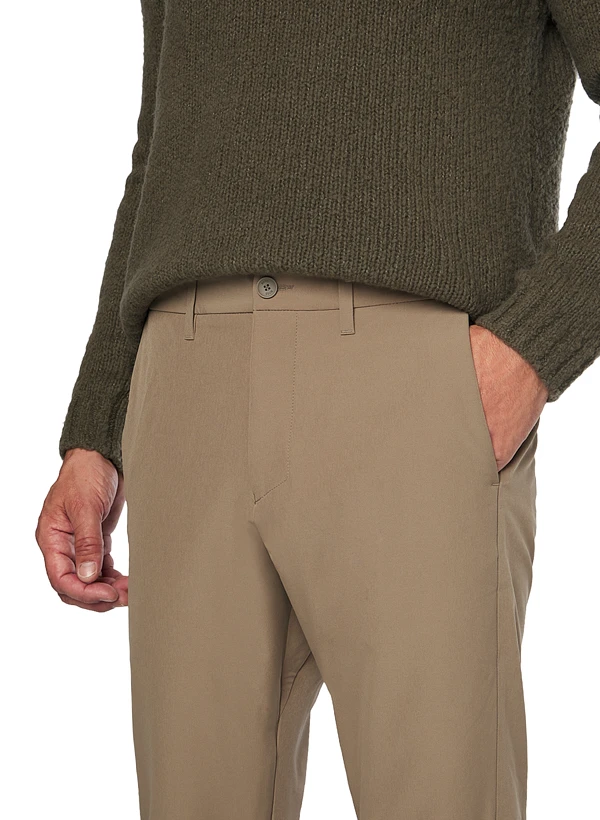 Das dezente Greige verleiht dieser technischen Hose urbane Eleganz, während das integrierte Kartensteckfach im rechten Taschenbeutel praktischen Mehrwert bietet. Der Mikrofaser-Stretch aus Polyester und Elasthan fühlt sich leicht an, trocknet schnell und weist Wasser zuverlässig ab. Die Regular Fit Passform mit weitenregulierbarem Tunnelzug macht sie zum vielseitigen Begleiter für aktive Tage in der Stadt. Verdeckt geknöpfte Gesäßtaschen und seitliche Einschubtaschen runden die durchdachte Ausstattung ab.