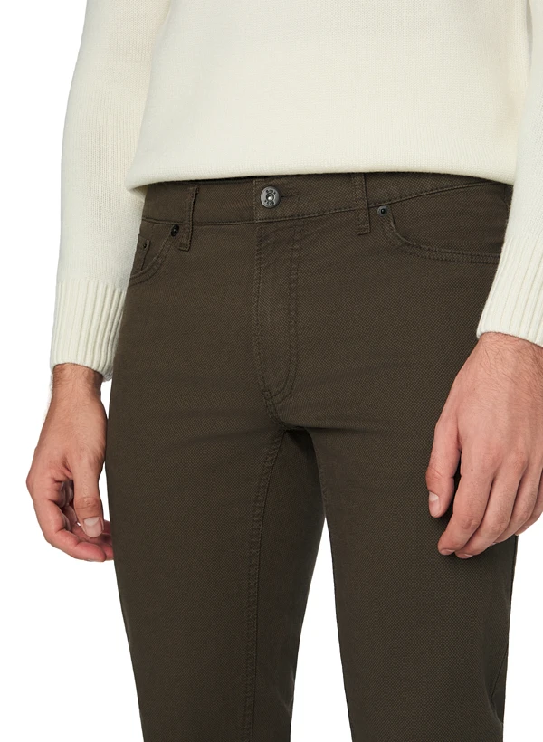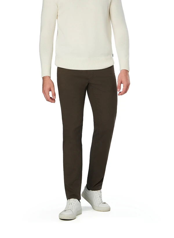 Der warme Braunton zeigt sich hier mit einem raffinierten Twotone-Finish, das der Hose eine lebendige Tiefe verleiht. Die hochwertige Baumwolle mit Elasthan-Anteil sorgt für angenehmen Tragekomfort und passt sich jeder Bewegung flexibel an. Im Modern Fit mit geradem Beinverlauf sitzt die Hose entspannt ohne aufzutragen – ideal für Büro und Freizeit. Die klassische Five-Pocket-Ausstattung bietet praktischen Stauraum für Alltägliches.