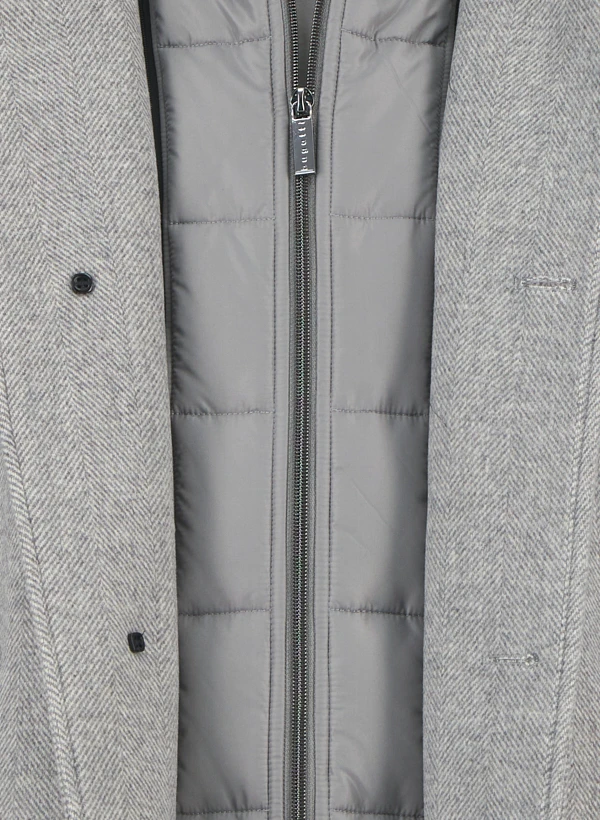 Grauer Wollmantel mit flexiblem Steppeinsatz
