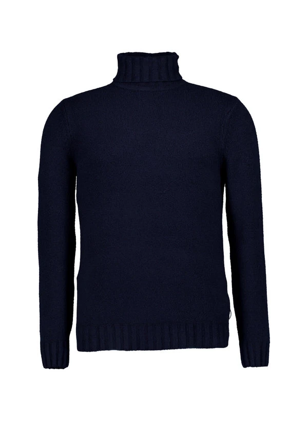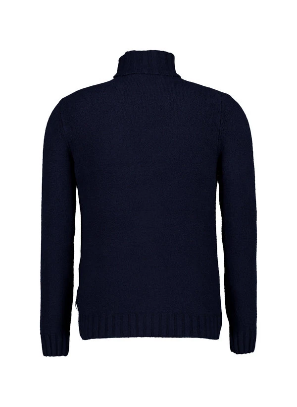 Die charakteristische Bouclé-Oberfläche verleiht diesem dunkelblauen Rollkragenpullover eine besondere Textur mit dezentem Relief. Das weiche Baumwollgewebe mit Elasthan-Anteil schmiegt sich angenehm an den Körper und bietet durch seine atmungsaktive Struktur optimalen Tragekomfort. Der klassische Rollkragen schützt vor kühlen Temperaturen und unterstreicht die elegante Silhouette für Business-Casual oder urbane Anlässe. Die tiefe Marinefarbe harmoniert mühelos mit hellen wie dunklen Tönen und macht den Pullover zum vielseitigen Begleiter.