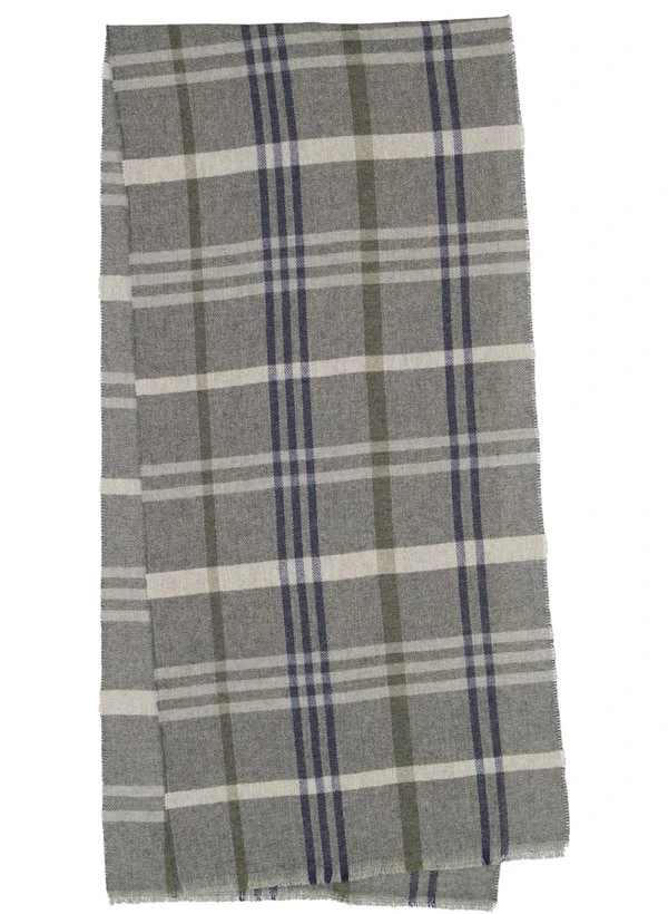 Großzügiges Kaschmir-Karomuster in Grau, Marine und Oliv