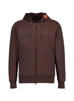 Die dunkelbraune Sweatjacke Kano kombiniert klassisches Sweatmaterial mit weichen Nicki-Partien an Schultern und Kapuze für einen raffinierten Materialmix. Die reine Baumwolle fühlt sich angenehm auf der Haut an und reguliert die Temperatur bei wechselnden Aktivitäten. Der durchgehende Zwei-Wege-Reißverschluss und die seitlichen Leistentaschen machen sie zum praktischen Begleiter für urbane Abenteuer. Tonige Overlocknähte und der Kordelzug an der Kapuze unterstreichen den sportiven Charakter.