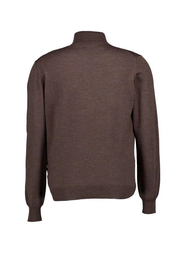 Das satte Dunkelbraun verleiht diesem Rollkragenpullover eine elegante Tiefe, die sowohl klassisch als auch modern wirkt. Die feine Merinowolle fühlt sich weich auf der Haut an und reguliert die Körpertemperatur optimal – wärmend ohne zu beschweren. Der hohe Rollkragen und die klare Linienführung machen ihn zum vielseitigen Begleiter für Business-Casual oder gehobene Freizeitlooks. Die leichte Feinstrick-Qualität ermöglicht angenehmes Layering unter Sakkos oder Mänteln.