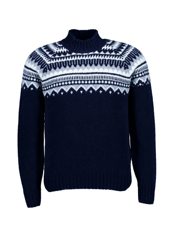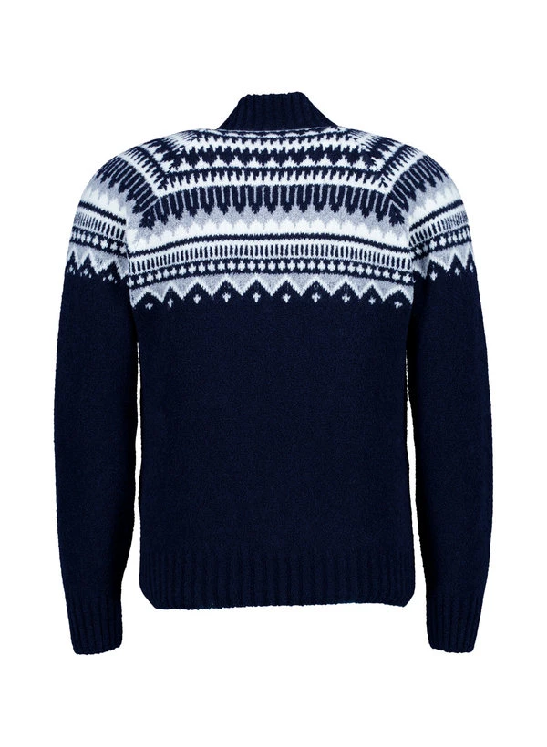 Das kontrastreiche Norwegermuster in Dunkelblau verleiht diesem Stehkragenpullover eine markante Optik mit traditionellem Charakter. Die hochwertige Schurwolle wärmt zuverlässig und reguliert die Körpertemperatur, während der Polyamid-Anteil für dauerhafte Formstabilität sorgt. Der hohe Stehkragen und die sportlichen Raglanärmel schaffen eine moderne Silhouette, die sowohl im urbanen Alltag als auch bei winterlichen Ausflügen überzeugt. Die dezente Musterung setzt stilvolle Akzente ohne aufdringlich zu wirken.