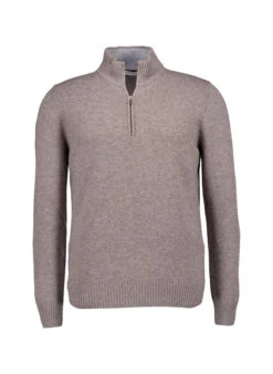 Die grau melierte Optik verleiht diesem Troyer eine zeitlose Eleganz, während der kurze Reißverschluss am Stehkragen für sportive Akzente sorgt. Das feine Gestrick aus Schurwolle mit Kaschmir fühlt sich besonders weich an und wärmt zuverlässig, ohne aufzutragen. Der schmal geschnittene Troyer passt perfekt unter Sakkos und Jacken oder wird solo zum stilvollen Begleiter für Business-Casual-Anlässe. Geminderte Armausschnitte und Rippenstrickbündchen an Kragen, Ärmeln und Saum unterstreichen die hochwertige Verarbeitung.
