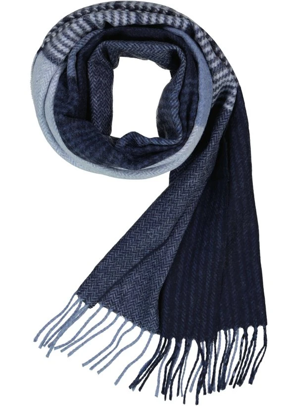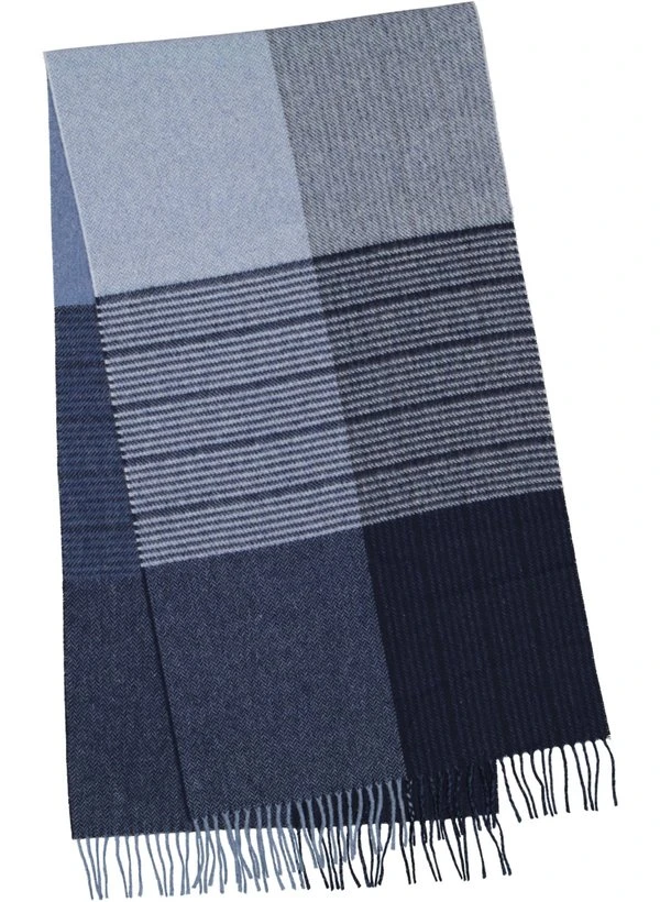 Die tiefe Marinefarbe und die traditionellen Fransen verleihen diesem Schal zeitlose Eleganz mit britischem Understatement. Das weiche Lammwollgewebe wärmt angenehm am Hals und fühlt sich dabei federleicht an – ohne zu kratzen oder aufzutragen. Mit großzügigen 192 x 53 cm lässt er sich vielseitig binden: locker um den Hals geschlungen oder klassisch geknotet unter dem Mantelrevers. Die feine italienische Webqualität zeigt sich in der gleichmäßigen Struktur und den sauber gearbeiteten Fransenkanten.