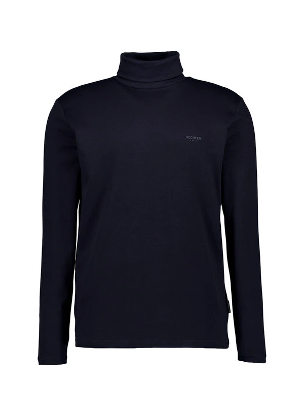 Das tiefe Nachtblau und der hochgeschlossene Rollkragen verleihen diesem Longsleeve eine markante, urbane Ausstrahlung. Die Interkock-Jersey-Qualität aus reiner Baumwolle fühlt sich angenehm an und bietet gleichzeitig hohen Tragekomfort – ideal für kühlere Tage. Der körpernahe Schnitt wirkt modern und lässt sich sowohl solo als auch unter Blazern oder Jacken tragen. Die sorgfältige Verarbeitung zeigt sich in sauberen Nähten und einer formstabilen Passform. HECHTER PARIS steht seit 1962 für französische Eleganz in tragbarer Form – hier interpretiert als zeitloser Rollkragen für den urbanen Alltag. Perfekt für die Übergangszeit und als wärmende Schicht im Winter.