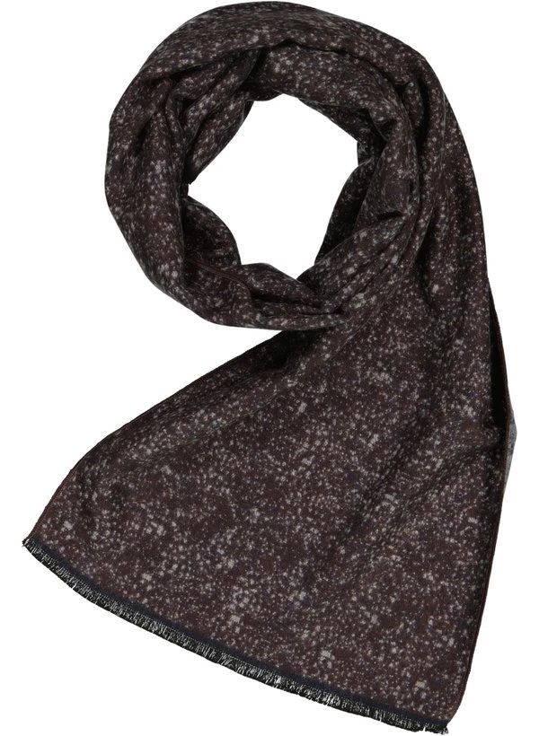 Braun-navy melierter Webschal mit offenen Fransen