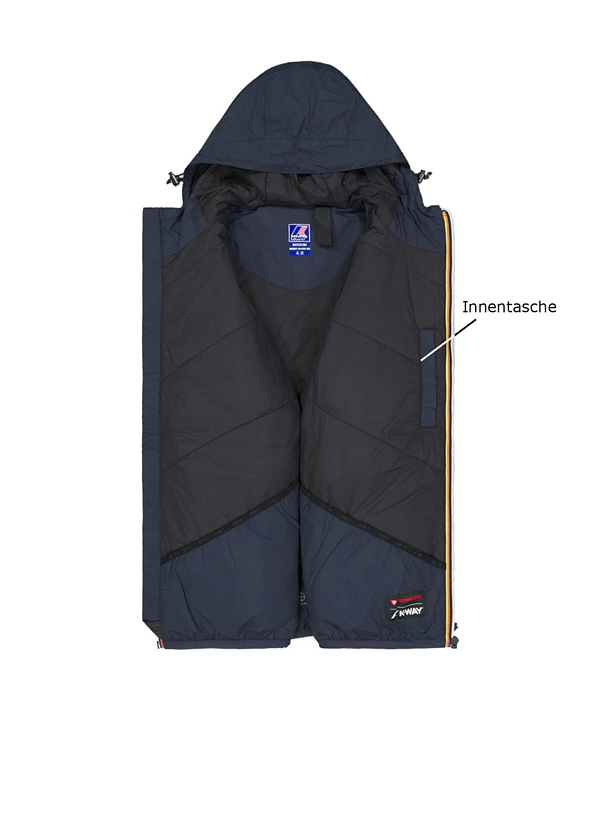Das satte Marineblau verleiht dieser technischen Jacke urbane Eleganz, während die kompakte Silhouette für klare Linien sorgt. Das recycelte Polyamid fühlt sich leicht an und bietet dank versiegelter Nähte zuverlässigen Schutz vor Wind und Nässe. Die durchdachte Ausstattung mit verdeckten Reißverschlusstaschen und regulierbarem Saum macht sie zum idealen Begleiter für wechselhafte Herbsttage. Die wärmende Wattierung und das aufgedruckte Adressenfeld in der Innentasche zeigen die typische K-Way-Liebe zum funktionalen Detail.