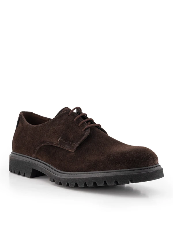 Unser Tipp: Kombinieren Sie die braunen Veloursleder-Derbys mit einer dunkelblauen Cordhose und einem Wollpullover für einen stilvollen Herbst-Look.