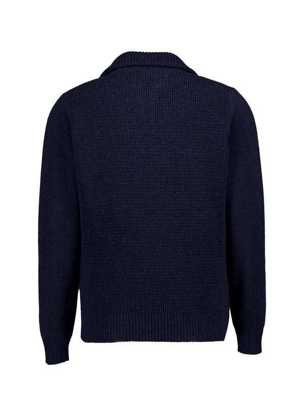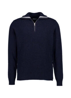 Die markante Struktur verleiht diesem dunkelblauen Troyer eine maskuline Textur mit dezentem Glanz. Das feine Merinogarn fühlt sich weich an und reguliert die Körpertemperatur optimal – wärmt bei Kälte, kühlt bei Wärme. Der hohe Stehkragen mit kurzem Reißverschluss schützt vor Wind und lässt sich für mehr Lässigkeit öffnen. Die OEKO-TEX® Zertifizierung garantiert schadstoffgeprüfte Materialien für unbedenklichen Tragekomfort.