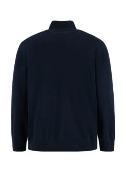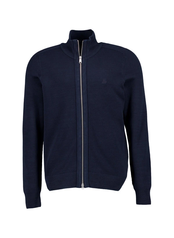 Der markante Stehkragen und die Raglanärmel verleihen diesem dunkelblauen Cardigan eine moderne, entspannte Silhouette. Die reine Bio-Baumwolle fühlt sich weich auf der Haut an und reguliert die Körpertemperatur natürlich – ideal für wechselhafte Übergangszeiten. Mit seinem praktischen Zwei-Wege-Reißverschluss lässt sich der Cardigan flexibel stylen und passt sowohl ins Büro als auch zum entspannten Wochenende. Die sorgfältige Verarbeitung zeigt sich in jedem Detail, von den sauberen Nähten bis zum hochwertigen Reißverschluss.