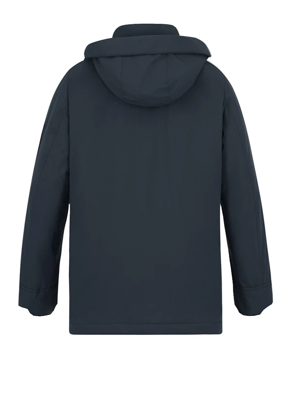 Die tiefblaue Färbung in Navy verleiht diesem Parka zeitlose Eleganz, während die durchdachte 2-in-1-Tasche am linken Arm für praktische Details sorgt. Das recycelte Polyester fühlt sich leicht an und bietet dank wasserabweisender Ausrüstung zuverlässigen Schutz bei wechselhaftem Wetter. Der Zwei-Wege-Reißverschluss ermöglicht flexible Bewegungsfreiheit, während die angeschnittene Kapuze und der weitenregulierbare Saum für optimale Passform sorgen. Die verdeckte Druckknopfblende über dem Reißverschluss und die seitlichen Taschen mit gekröpfter Patte unterstreichen die klare Linienführung.