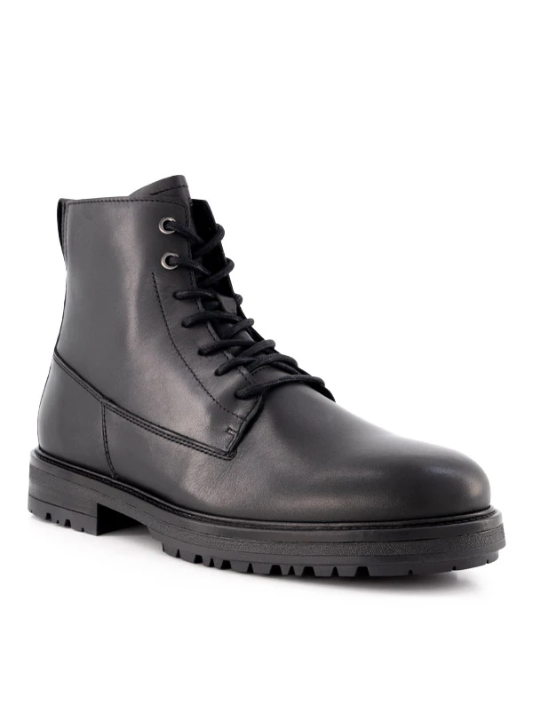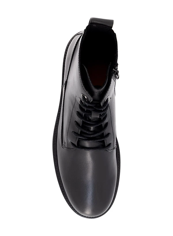 Die markante Zuglasche und der elastische Einsatz am hinteren Schaftrand machen diese Schnürboots zum praktischen Begleiter für die kalte Jahreszeit. Das geschmeidige Leder schmiegt sich angenehm an den Fuß, während das textile Futter für ein warmes Tragegefühl sorgt. Die profilierte Gummisohle bietet sicheren Halt auf nassen Straßen und verleiht dem Boot eine urbane Note. Der seitliche Reißverschluss ermöglicht schnelles An- und Ausziehen trotz Schnürung.