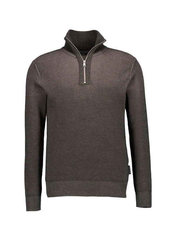 Das markante Piqué-Strickmuster verleiht diesem braunen Troyer eine besondere Tiefe und haptische Struktur. Die reine Bio-Baumwolle fühlt sich angenehm weich auf der Haut an und reguliert das Körperklima auf natürliche Weise. Der Stehkragen mit kurzem Reißverschluss ermöglicht flexible Stylings zwischen sportlich-lässig und smart-casual. Die strukturierte Oberfläche unterstreicht die hochwertige Verarbeitung und sorgt für einen dezenten, aber wirkungsvollen Akzent.