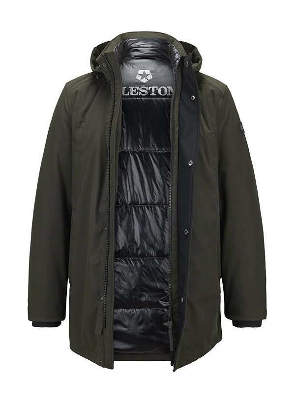 Olivgrüner Funktionsparka mit innovativer Sorona-Wattierung