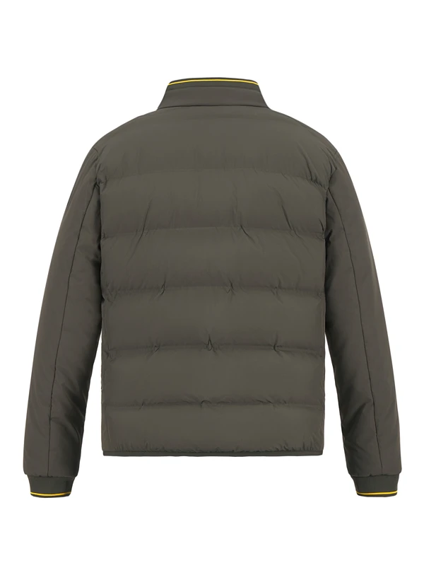Die grüne Mikrofaser-Jacke zeigt eine moderne Heatpress-Steppoptik, die ohne klassische Nähte auskommt und so für eine glatte, windabweisende Oberfläche sorgt. Das atmungsaktive Polyester-Material reguliert die Körpertemperatur und hält gleichzeitig Wind und Nässe zuverlässig ab. Der Stehkragen mit Kontrastkante und die elastischen Abschlüsse an Ärmeln und Saum schaffen eine sportive Silhouette für aktive Tage. Reißverschlusstaschen außen und eine Innentasche bieten sicheren Stauraum für Wertsachen.