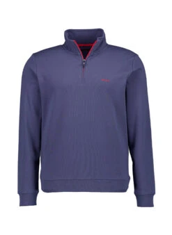 Der tiefe Navy-Ton erhält durch den kurzen Reißverschluss in Kontrastfarbe einen markanten Akzent, der dem klassischen Troyer-Design moderne Frische verleiht. Die hochwertige Baumwoll-Mischung mit Elasthan-Anteil fühlt sich weich an und bietet dank der Wirkwaren-Qualität optimale Bewegungsfreiheit für aktive Tage. Der Stehkragen schützt vor kühlem Wind, während die körpernahe Passform eine sportlich-schlanke Silhouette unterstreicht. Die sorgfältige Verarbeitung zeigt sich in den präzisen Nähten und der formstabilen Struktur des Materials.