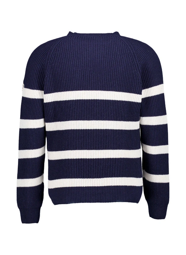 Die markanten navy-weißen Streifen verleihen diesem Pullover maritimen Charakter mit zeitloser Eleganz. Der hochwertige Materialmix aus Baumwolle, Polyester und Wolle liegt angenehm auf der Haut und bietet durch den Rippenstrick eine strukturierte Haptik mit natürlicher Elastizität. Die Raglanärmel sorgen für entspannte Bewegungsfreiheit und unterstreichen den sportiv-lässigen Schnitt. Rippenstrickbündchen an Ausschnitt, Ärmeln und Saum garantieren perfekten Sitz und Formstabilität.
