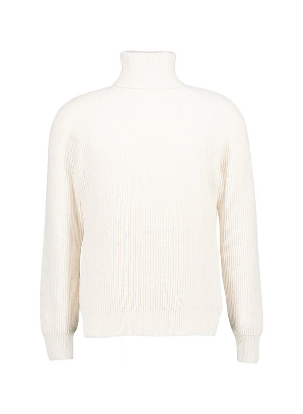 Ecru-Rollkragen mit markanter Rippenstrick-Struktur