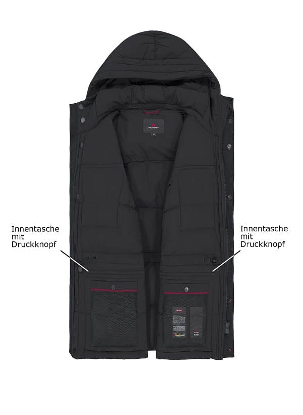 Schwarze Daunenjacke mit raffiniertem 2-in-1 Taschensystem
