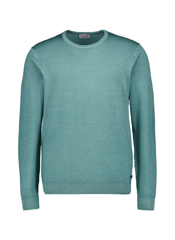 Seegrüner Merinowolle-Pullover mit raffinierten Farbeffekten