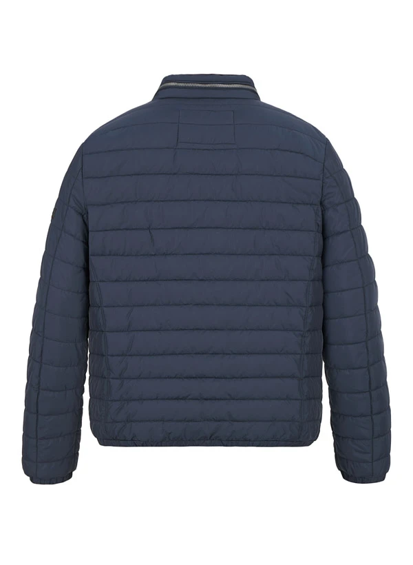 Die markante Steppstruktur verleiht dieser marineblauen Jacke eine moderne, sportive Optik mit dezentem Glanz. Das wasserabweisende Mikrofaser-Material fühlt sich leicht an und schützt zuverlässig vor Wind und leichtem Regen, während die recycelte Polyester-Wattierung für angenehme Wärme sorgt. Die durchdachte Ausstattung mit Stehkragen, Brusttasche und seitlichen Reißverschlusstaschen macht sie zum idealen Begleiter für aktive Tage in der Stadt. Der elastische Saum und die Ärmelbündchen sorgen für eine körpernahe Passform ohne einzuengen.