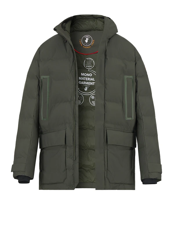 Die markante grüne Färbung verleiht diesem Steppmantel urbane Präsenz, während die großformatigen Pattentaschen und die Brusttaschen mit Reißverschluss durchdachte Funktionalität bieten. Das recycelte Polyester-Obermaterial mit PLUMTECH®-Technologie speichert Wärme optimal und bleibt dabei atmungsaktiv – ein spürbarer Komfortgewinn an kalten Tagen. Der moderne Schnitt mit Zwei-Wege-Reißverschluss und darüber liegendem Druckknopfverschluss macht den Mantel zum vielseitigen Begleiter für Stadt und Outdoor. Die angeschnittene Kapuze und die Kombination aus inneren Rippenbündchen und äußeren Klettriegeln an den Ärmeln zeigen die Detailverliebtheit italienischer Ingenieurskunst.