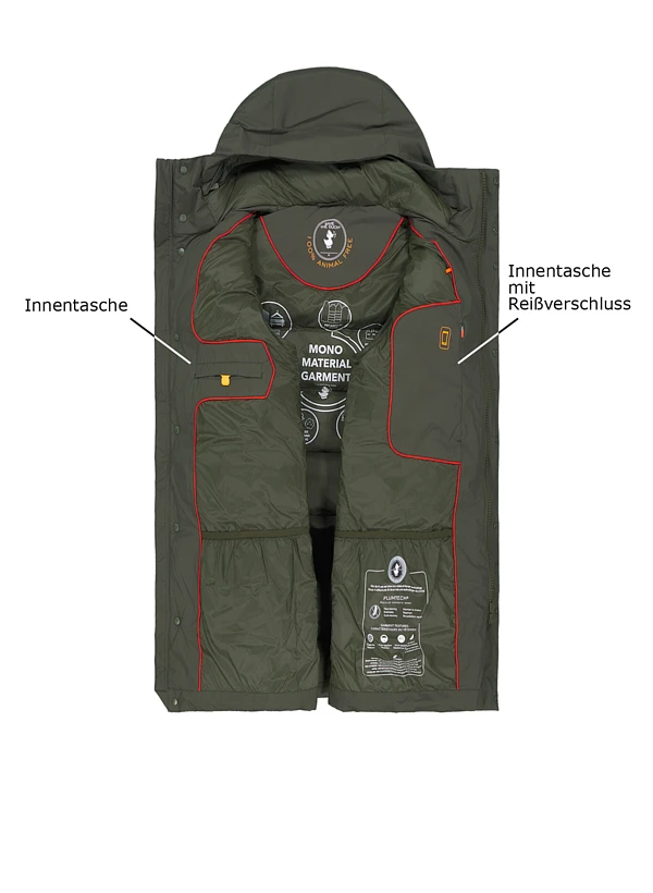 Grüner High-Tech-Steppmantel mit raffiniertem Taschensystem