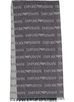 EMPORIO ARMANI, Schal, Wolle, Grau-schwarz Gemustert