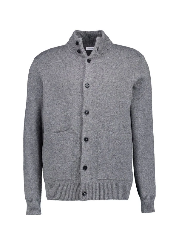 Der graue Cardigan präsentiert sich mit einem markanten Stehkragen, der dem klassischen Design eine moderne Note verleiht. Die hochwertige Mischung aus Wolle, Modal und Nylon fühlt sich weich an und reguliert die Körpertemperatur optimal – Modal sorgt dabei für seidigen Griff und Atmungsaktivität. Der durchdachte Schnitt mit Knopfleiste macht den Cardigan zum vielseitigen Begleiter für Business-Casual und gehobene Freizeitanlässe. Aufgesetzte Taschen bieten praktischen Stauraum und unterstreichen den entspannten Charakter.