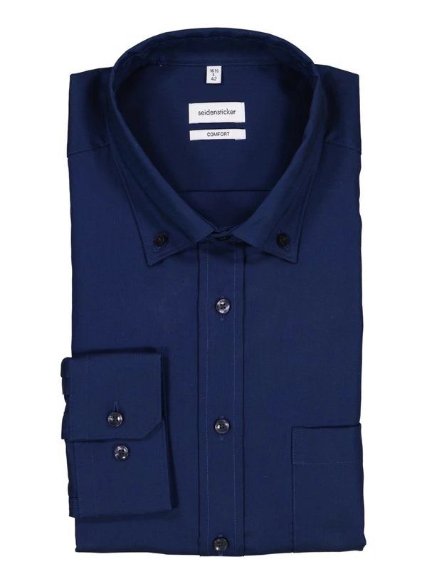 Das satte Blau dieses Hemds wirkt zeitlos elegant und lässt sich vielseitig kombinieren – vom Business-Anzug bis zur lässigen Chino. Die reine Baumwolle fühlt sich angenehm auf der Haut an und bietet dank der bügelfreien Ausrüstung maximalen Tragekomfort ohne lästiges Glätten nach der Wäsche. Mit seinem Comfort Fit und dem Button-Down-Kragen vereint es entspannte Passform mit gepflegtem Auftreten für Büro und Freizeit. Die französische Knopfleiste und die praktische Brusttasche runden das durchdachte Design ab, während die weitenverstellbare Sportmanschette für optimalen Sitz am Handgelenk sorgt.