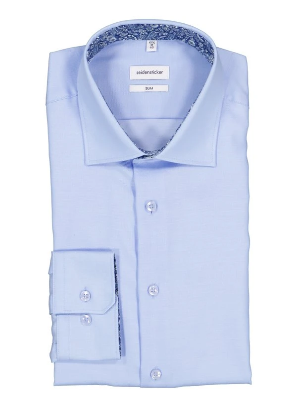 Das kräftige Hellblau dieses Hemds zeichnet sich durch seine außergewöhnliche Blickdichte aus – ideal, wenn persönliche Details wie Tattoos in formellen Situationen verborgen bleiben sollen. Die reine Baumwolle fühlt sich kühl auf der Haut an und behält dank bügelfreier Ausrüstung ihre glatte Struktur den ganzen Tag. Mit italienischer Knopfleiste und Kentkragen wirkt das Hemd klassisch-elegant und passt sowohl ins Büro als auch zu wichtigen Terminen. Die weitenverstellbare Sportmanschette mit Kontrastmaterial im Inneren setzt dezente Akzente und ermöglicht individuellen Tragekomfort.