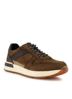 Das braune Veloursleder zeigt sich in markanter Used-Optik, während die Perforierungen am Vorderblatt und seitlich für luftige Akzente sorgen. Das weiche Leder schmiegt sich angenehm an den Fuß, während die gepolsterten Schaftränder zusätzlichen Komfort bieten. Der Sneaker verbindet lässige Vintage-Ästhetik mit urbanem Stil und passt perfekt zu Jeans oder Chinos. Die herausnehmbare Ledereinlegesohle und der Kontrasteinsatz an der Ferse runden das durchdachte Design ab.