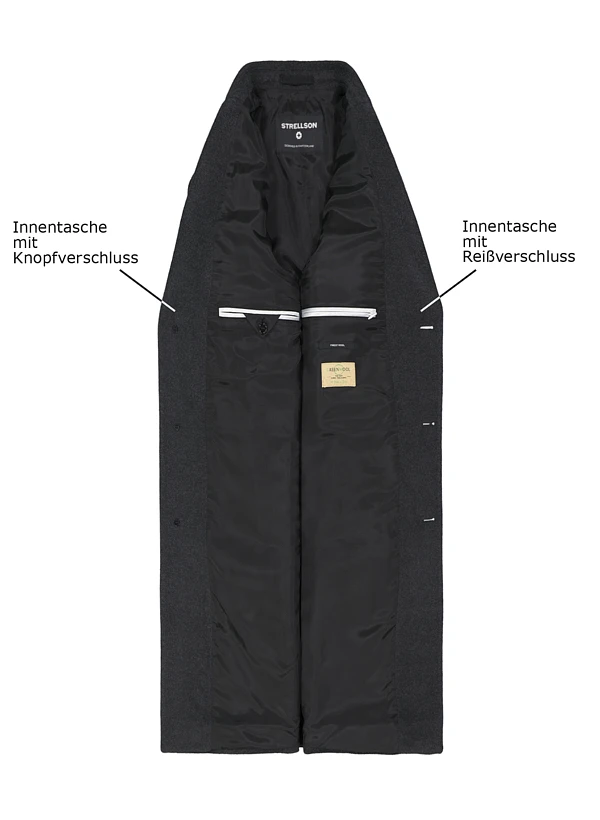 Die tiefe, dunkelgraue Melange verleiht diesem Mantel zeitlose Eleganz und urbane Souveränität. Das hochwertige Woll-Kaschmir-Gewebe fühlt sich luxuriös weich an und wärmt zuverlässig an kalten Tagen, während die Polyamid-Beimischung für Formstabilität und Langlebigkeit sorgt. Der klassische Reverskragen und die verdeckte Knopfleiste unterstreichen die klare Linie, die sowohl zum Business-Anzug als auch zur Smart-Casual-Garderobe passt. Praktische Einschubtaschen und der Mittelschlitz im Rücken sorgen für Bewegungsfreiheit und Komfort im Alltag. Strellson zeigt hier seine Schweizer DNA: präzise Schnittführung trifft auf kompromisslose Materialqualität – seit 1984 der Maßstab für urbane Männermode. Dieser Mantel ist die ideale Wahl für die Übergangszeit und begleitet Sie stilvoll durch Herbst und Winter.