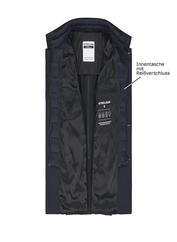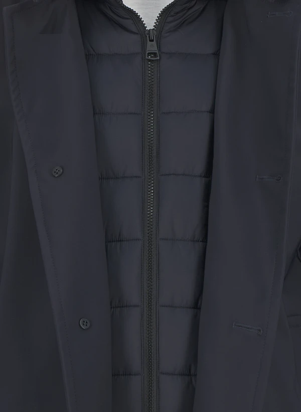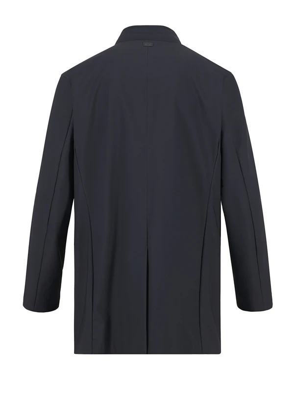 Der abnehmbare Einsatz an der Knopfleiste macht diesen Mantel zum wandelbaren Begleiter – mal puristisch glatt, mal mit markantem Akzent. Das winddichte Nylon-Gewebe schützt zuverlässig vor Wetterkapriolen, während die Halbfütterung für angenehme Bewegungsfreiheit sorgt. Die klare Silhouette mit Stehkragen und praktischen Leistentaschen passt sowohl zum Business-Outfit als auch zur urbanen Freizeitgarderobe. Der Rückenschlitz und die durchdachte Länge von 85 cm verleihen dem Modell eine elegante Dynamik.
