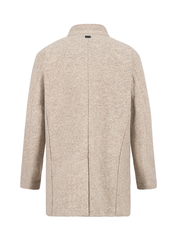 Der markante Stehkragen und die durchgehende Knopfleiste verleihen diesem beigen Mantel eine moderne, urbane Silhouette. Die leichte Doubleface-Qualität aus Polyester, Polyamid und Wolle fühlt sich angenehm weich an und bietet trotz des geringen Gewichts zuverlässigen Schutz vor kühlem Wind. Mit seiner klaren Schnittführung und der halbgefütterten Verarbeitung passt er perfekt zum Business-Look oder zur gehobenen Freizeitgarderobe. Die praktischen Seitentaschen und der Gehschlitz im Rücken sorgen für Bewegungsfreiheit und Funktionalität im Alltag.
