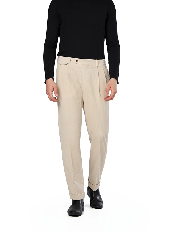 Hellbeiger Breitcord mit klassischen Bundfalten